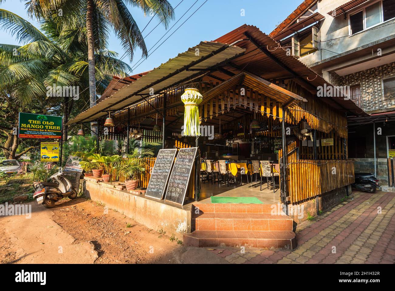 Candolim North Goa India November 23 2019 Street View Of Candolim At Sunny Day With The Old Mango Tree Bar Restaurant Exterior In Candolim No Stock Photo Alamy